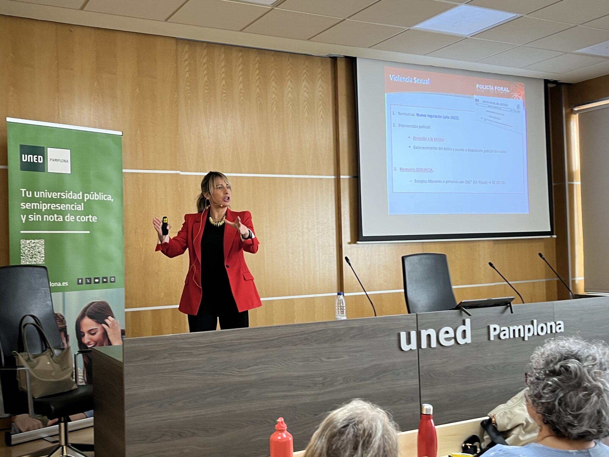 Cristina Eseverri, Comisaria de la División de Policía Judicial de la Policía Foral de Navarra, ha impartido a nuestros estudiantes de la asignatura de UNED Senior «Escena del crimen y conducta delictiva» una conferencia sobre la violencia de género.