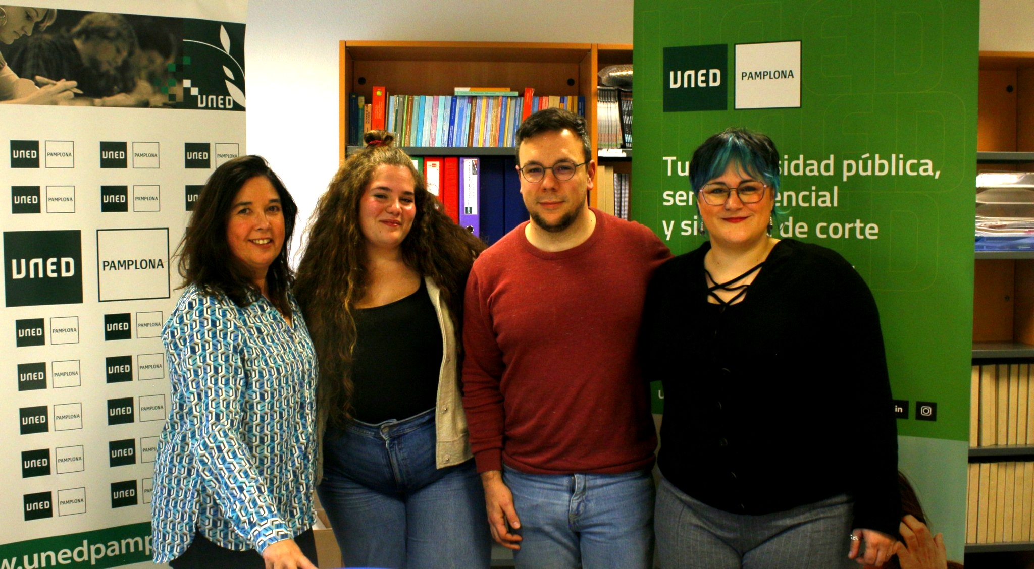 Nos acompañan Dorleta García Melero, premio al mejor expediente académico 2023-2024 en el Grado en Estudios Ingleses; Sara Redondo, graduada en Psicología y actualmente estudiante de máster; y Daniel Priego, graduado en Estudios Ingleses, con Máster del Profesorado y ya ejerciendo como docente.