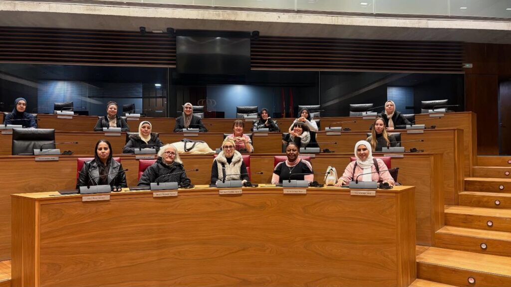 Mujeres del taller de competencias bĂĄsicas para poblaciĂłn migrante visitan el Parlamento de Navarra